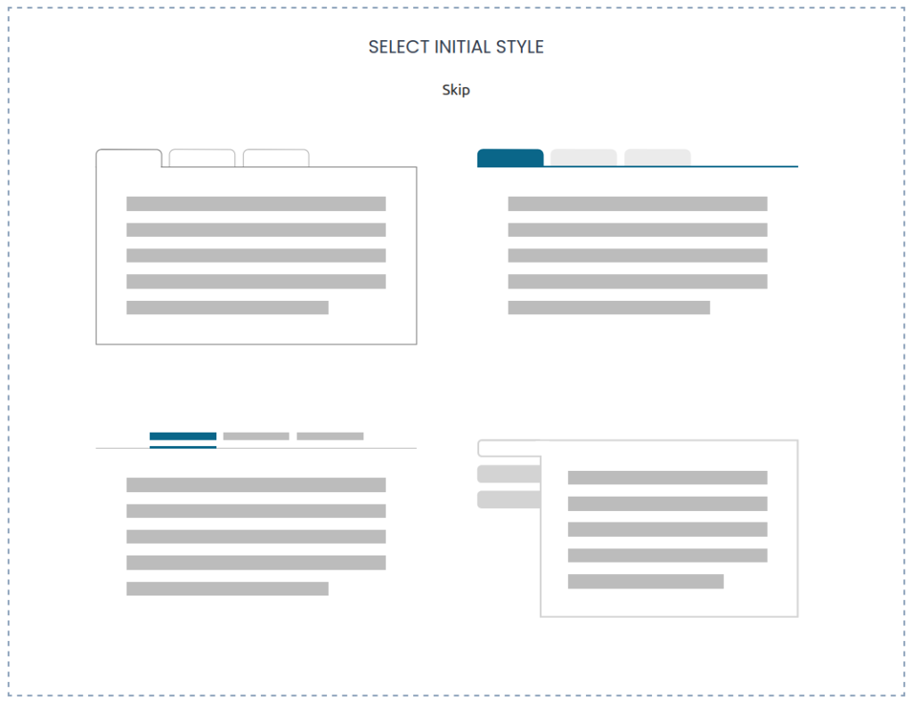 The Tabs block allows you to insert tabbed content within the confines of a standard page layout. The initial design options are as follows