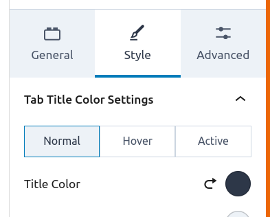 Since this is a third-party block, it doesn’t automatically inherit the theme styles, and will default to a blue tab. The hover background should always be updated to the brand orange (#ec6607)